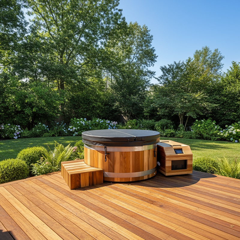 Complete, Ready-to-Use System: No need for constant ice replenishment! The Standard Configuration includes everything you need for an effortless cold plunge. A powerful Ice Bath Chiller (as clearly visible in the image, connected to the tub) maintains your desired cold temperature with ease, while the included Insulation Cover keeps the water pristine and cold when not in use. Thoughtfully designed Steps (as pictured) provide safe and convenient entry and exit, enhancing your overall experience.